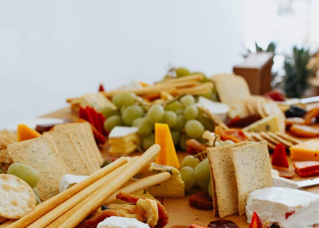 - Cheese grazing board with a selection of Australian cheeses, crackers and breads